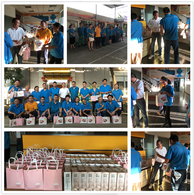 在9月29日這個美好的日子里,漢高機械的所有員工匯聚一起,共同來感受這個節(jié)日帶給我們的喜悅。下午17:00,所有員工集合,公司肖總致辭,提前預祝所有員工國慶中秋節(jié)日快樂!并且親自將公司準備的中秋禮品發(fā)放到每一位員工的手上。