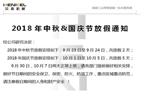 漢高機(jī)械在此祝大家國(guó)慶節(jié)快樂!國(guó)慶佳節(jié)喜來(lái)到,為你綻放快樂的煙花,愿你快樂每時(shí)刻;為你放飛健康和平鴿,愿你身體健康壯如牛;為你飄揚(yáng)成功的彩旗,愿你財(cái)源廣進(jìn),事業(yè)順暢步步高。國(guó)慶快樂!