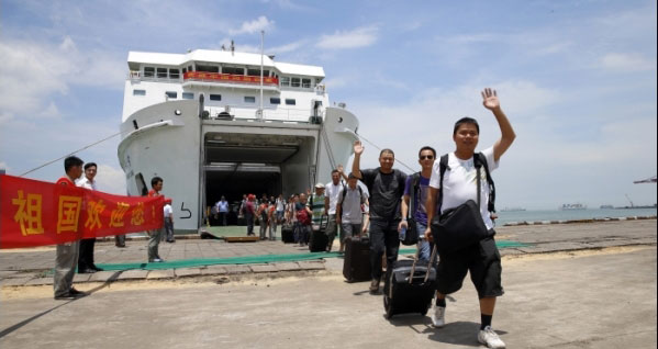 自5月14日越南發(fā)生針對(duì)外國(guó)企業(yè)和人員的打砸搶燒嚴(yán)重暴力事件以來,在越中國(guó)工人的安危就一直牽動(dòng)著全國(guó)人民的心。事件發(fā)生后,中國(guó)中冶集團(tuán)及參與救援的各相關(guān)部門和單位按照黨中央、國(guó)務(wù)院的指示精神和國(guó)資委的要求部署,團(tuán)結(jié)一致,迅速撤回在越中方人員并妥善安排救治傷員等事宜。圖為5月20日11時(shí)50分,中冶集團(tuán)的部分員工回到祖國(guó)的懷抱。(作者:吳治宏 單位:中冶十九冶)
