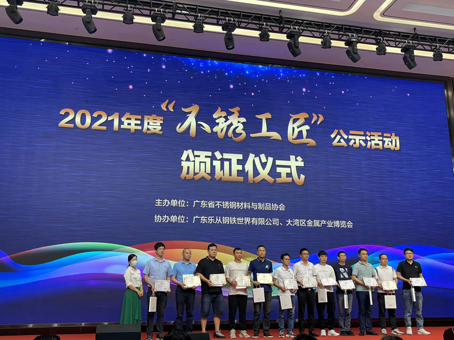 6月15日下午,由廣東省不銹鋼材料與制品協(xié)會舉辦的2021年度“不銹工匠”公示活動頒證儀式在理事單位樂從鋼鐵世界總部大樓多功能會議廳舉行。本次公益活動旨在進一步貫徹落實省委省政府“廣東技工”工程,大力弘揚工匠精神,培育選樹一批先進榜樣,進一步營造尊重人才、崇尚技能、追求品質的行業(yè)氛圍,持續(xù)擦亮“不銹優(yōu)品·廣東質造”的名片。