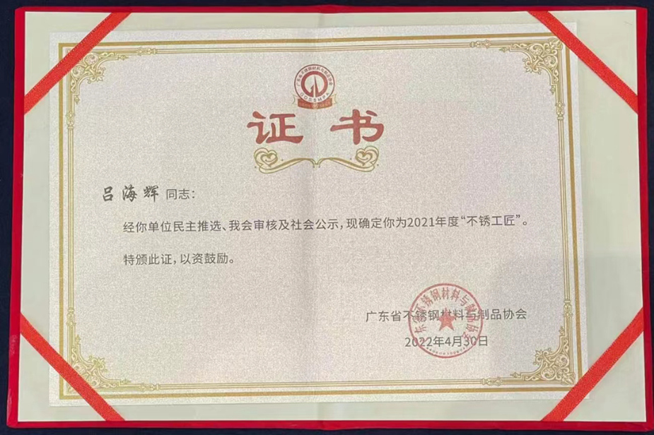 廣東省不銹鋼材料與制品協(xié)會希望以這次活動為契機,推動和引領不銹鋼行業(yè)精益求精成為習慣、敬業(yè)專注長久不息、不忘初心更顯清晰的工匠精神得到更好的傳承與發(fā)展。