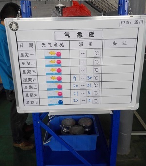 五、“法”,即操作法,指導書。操作法是引導操作的路線,在操作過程中路線不能變。有的操作工特別是新員工對操作法常有疑惑,作為生產(chǎn)車間管理者,除了解釋,還應派出經(jīng)驗豐富的老操作工進行手把手教導,直到他們完全理解和掌握。為了減少安全隱患,車間還應根據(jù)原始記錄、顯示記錄儀,不定期地進行檢查,提醒操作人員時刻保持警惕,做到操作與規(guī)定完全一致。針對每個不同崗位,車間還應制定各崗位的職能。這一點,可以清晰的通過漢高機械車間內(nèi)的白板展示出來。