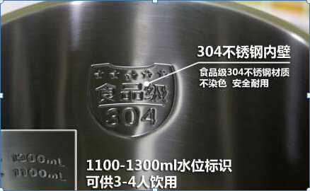 請一定要認準表面和內(nèi)壁的“304”字樣