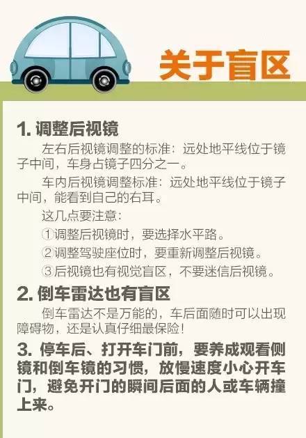 ?、?/span>倒車?yán)走_(dá)也有盲區(qū),不要全信。②車上人多,剎車要更早更重。③前車突然讓路,八成有情況,千萬別超車。④向右轉(zhuǎn)小彎,向左轉(zhuǎn)大彎。⑤女士開車上車先落鎖......