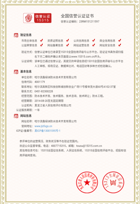 哈爾濱鑫綠洲防水技術(shù)開(kāi)發(fā)有限公司